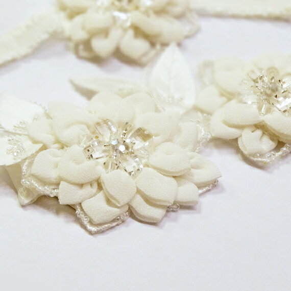 Silk chiffon Flower gater シルクシフォンフラワーガーター ダリアをイメージしたモチーフが清楚な印象を与えるシルクシフォンフラワーガーター。