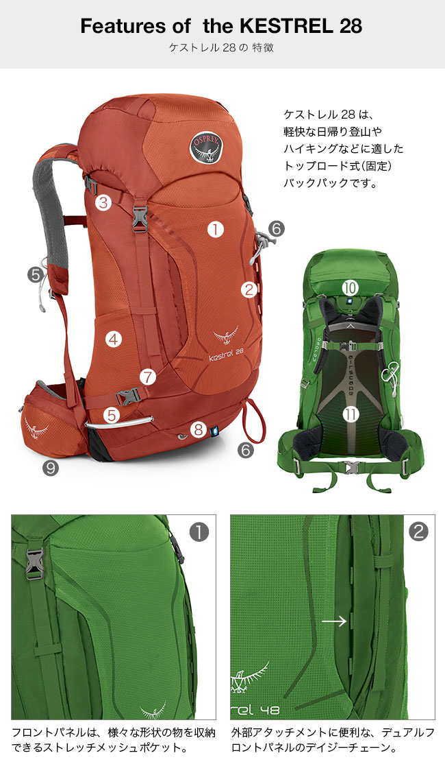 OSPREY(オスプレー) ケストレル 28/ジャングルグリーン/M/L OS50152グリーン リュック バックパック バッグ トレッキングパック トレッキング20 アウトドアギア