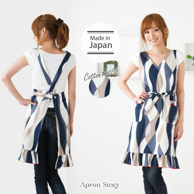 ウェーブVネックエプロン 日本製 かわいい おしゃれ プレゼント ギフト 母の日【メール便対応可】【N】【Y】