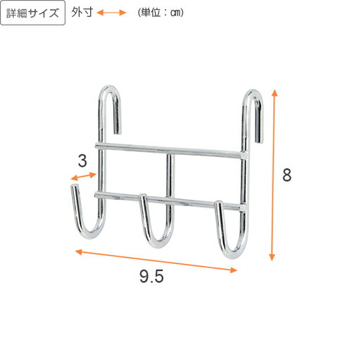 商品シリーズ 【ポール径共通】スチールラック用フック ブランドルミナス 共通パーツ(収納力アップ) 型番KP-3F サイズモデル ポール径 共通/幅10 外形寸法幅9.5×奥行3×高さ8cm 耐荷重 1kg 素材スチール(クロームメッキ) 塗装・コーティングクロームメッキ セット内容3連フック×1 梱包サイズ・重量 - JANコード4997236279293 同規格製品- 備考 ラック・ワイヤーバー等に引っ掛けるだけで小物整理が簡単に!! キッチンラック等のご使用にも人気 関連アイテムKP-3F,KP-5F,LSK-H20,LSK-H30,WB-F605,WB-F610,WB-F615,WB-F620,WB-F625,NT3560,NT3576,NT4560,NT4576