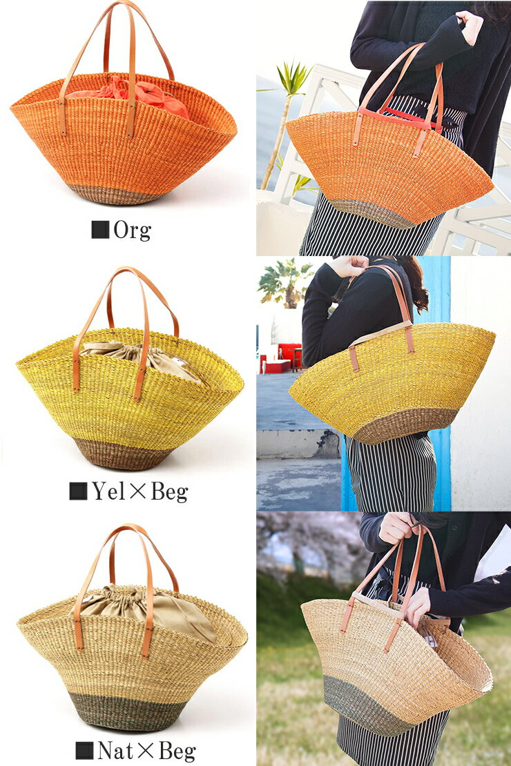 ブランド Muun(ムーニュ) 商品名 カゴバッグ 型番 SOPHIA サイズ/重量 縦24×横56×マチ20cm/470g 素材 本体/エレファントグラス100% 持ち手/レザー ポーチ/コットン100% カラー Org/Yel×Beg/Nat×Beg 生産国 ガーナ(デザイン/パリ) 商品説明 夏ファッションといえばカゴバッグ♪