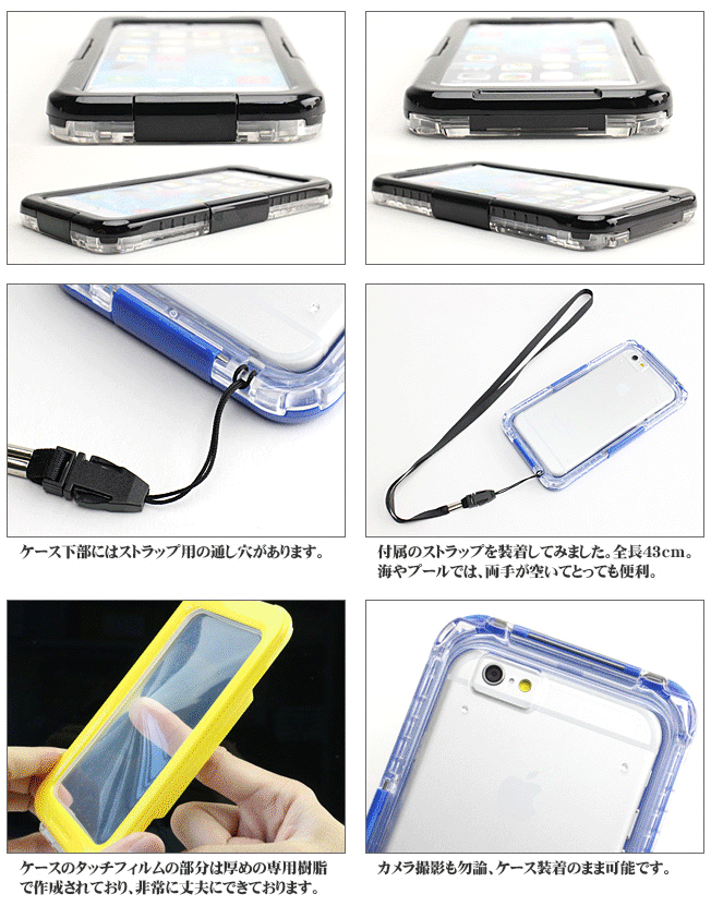 防水ケース iPhone8 ケース iPhone7 iPhone6s iPhone6 防水 防塵 iPhone8ケース iPhone7ケース iPhone6ケース アイフォン8 アイフォン7 アイフォン6s 完全防水 完全防塵 ウォータープルーフケース ストラップ カラー カラバリ 全6色 スマホケース